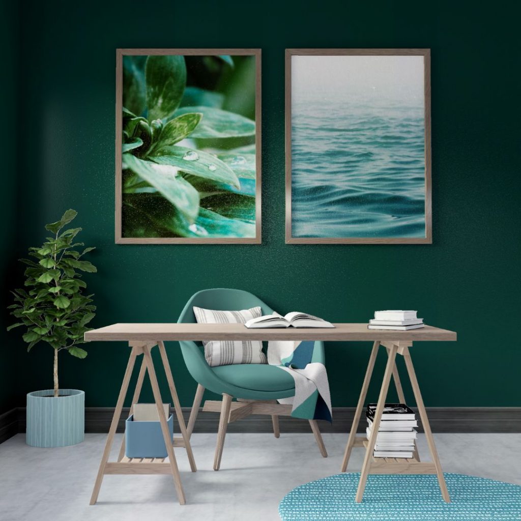 If you want to color your room the classic mid-century modern way, you’ll want to use bright accent colors against neutral colors. We recommend choosing a neutral wall color that speaks to you and then decorate with a bright colored statement piece like a couch or rug. Colors used in this design style can be very earthy with rich greens, browns, blues and deep reds.