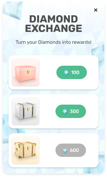Diamonds are a new in-game currency specifically for the Album. You can exchange your diamonds for rewards. There are 3 different chests, each with varying values and rewards.
