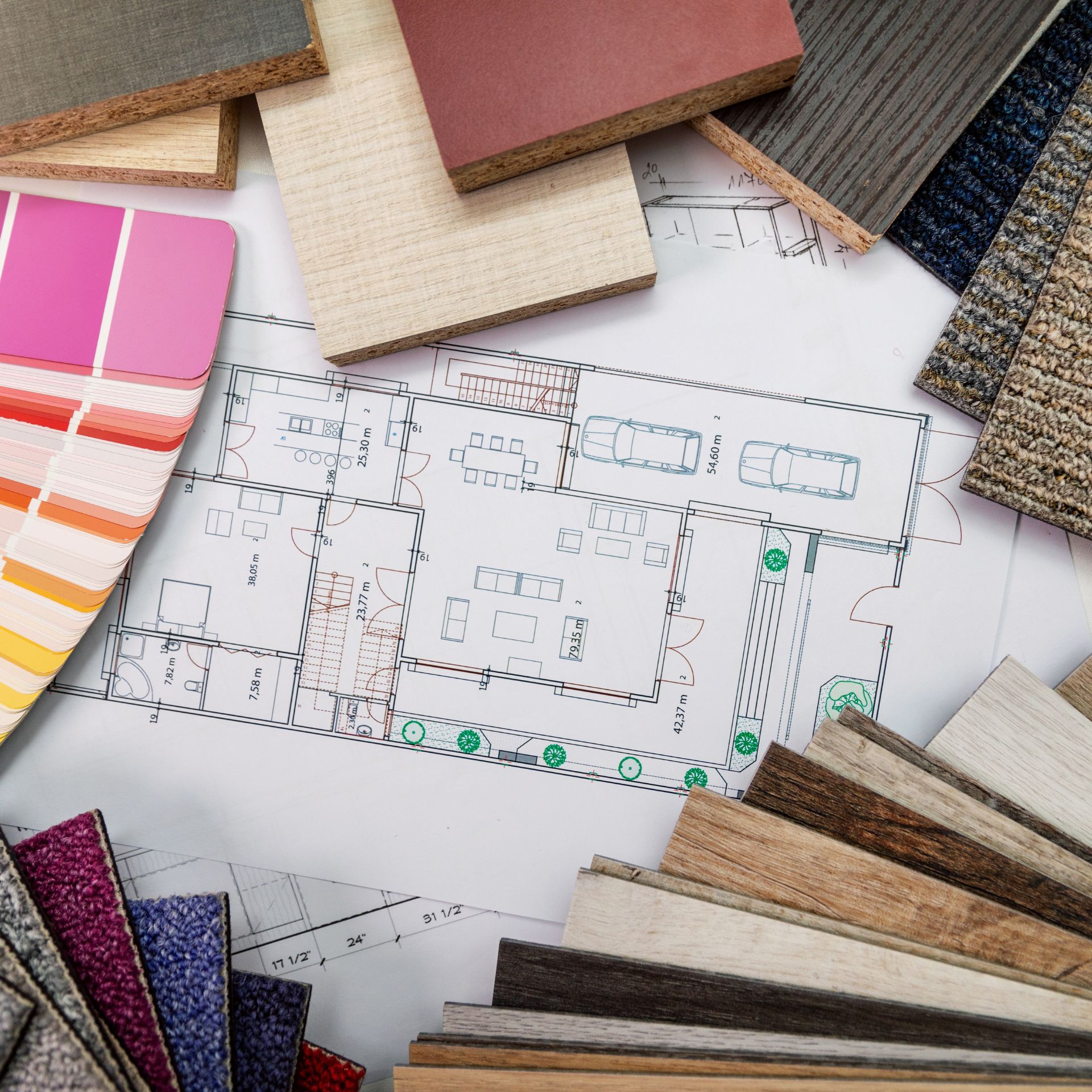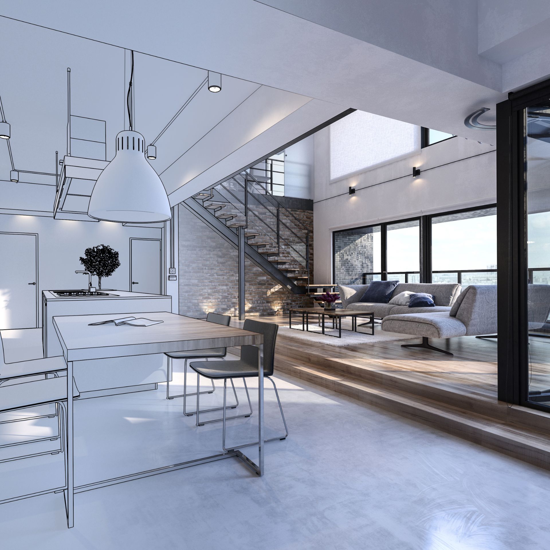 Start with a moodboard of the ideal living room. Go on to design the office you’ll be working in. Lastly, complete the original design you were aiming for in your moodboard.
